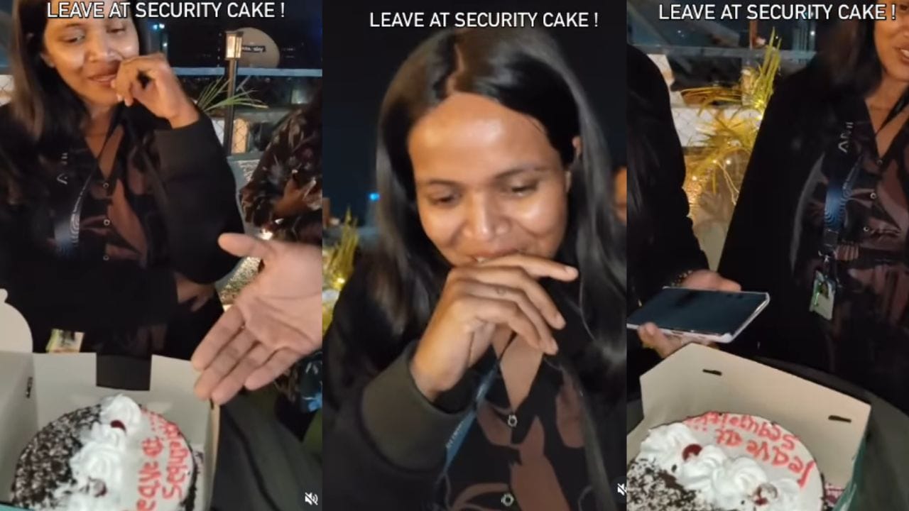 Viral Video: ‘സെക്യൂരിറ്റിയുടെ കയ്യില് കൊടുത്തേക്കൂ’; കേക്ക് കണ്ട് ഞെട്ടി ബെര്ത്ത്ഡേ ഗേള്