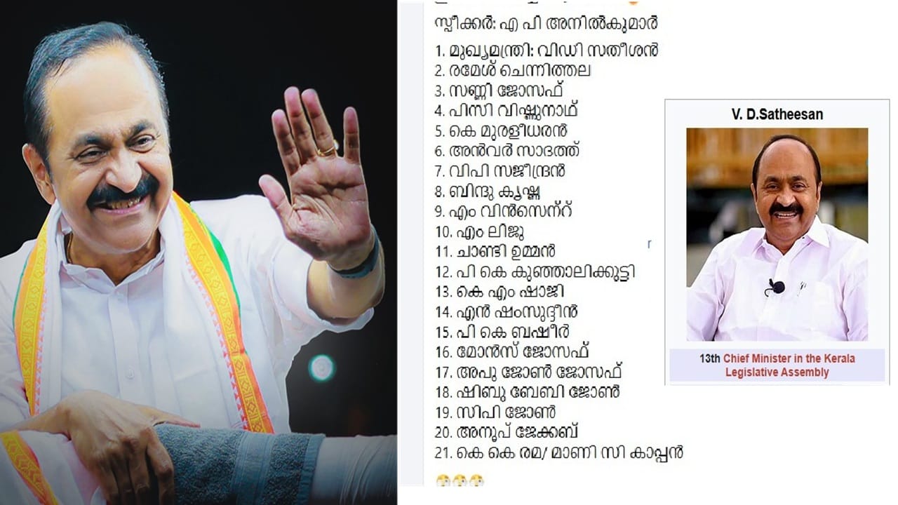 UDF Cabinet: വിക്കിപീഡിയയില് സതീശന് മുഖ്യമന്ത്രി; ഫേസ്ബുക്കില് യുഡിഎഫ് മന്ത്രിസഭയും ‘രൂപീകരിച്ചു’; 21 അംഗങ്ങള്