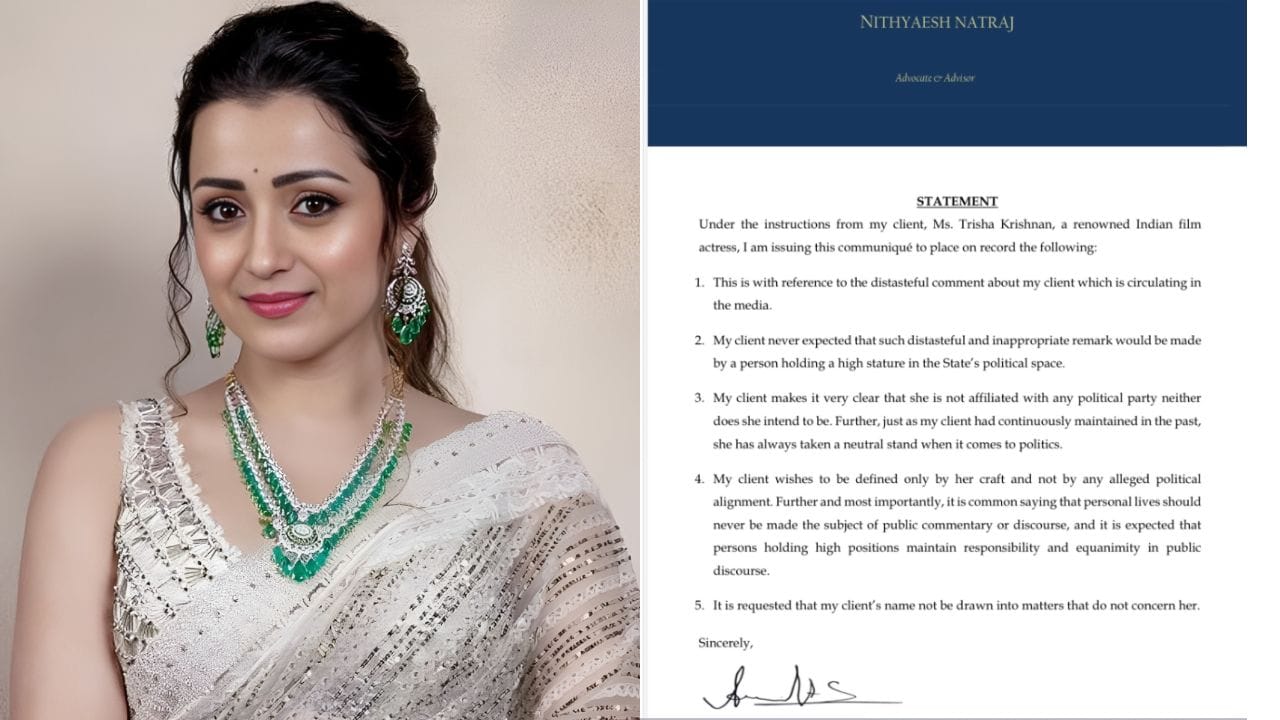 Trisha Krishnan Legal action: വിജയിക്ക് രാഷ്ട്രീയത്തിലൂടെ തമിഴ്നാട്ടിൽ എന്തെങ്കിലും സാധ്യമാക്കണമെങ്കിൽ ആ വിജയ് ആദ്യം തൃഷയെ വിട്ട് പുറത്തേക്ക് ഇറങ്ങി വരണമെന്നാണ് അധിക്ഷേപം നടത്തിയത്...
