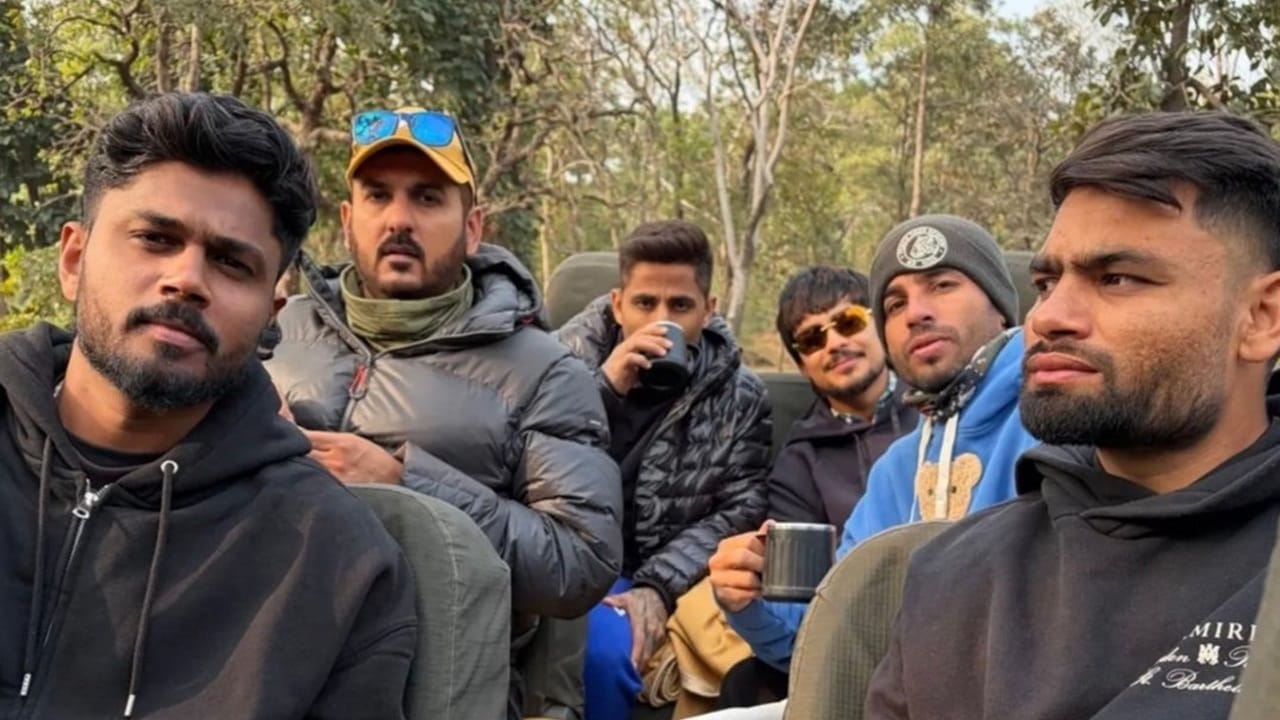 Sanju Samson shares jungle safari video: സഞ്ജു സാംസണ്, സൂര്യകുമാര് യാദവ്, ഇഷാന് കിഷന്, രവി ബിഷ്ണോയ്, റിങ്കു സിങ് എന്നിവര് പെഞ്ച് ടൈഗര് റിസര്വ് കേന്ദ്രത്തില് ജംഗിള് സഫാരി നടത്തുന്ന വീഡിയോ വൈറല്. സഞ്ജുവാണ് വീഡിയോ പങ്കുവച്ചത്.