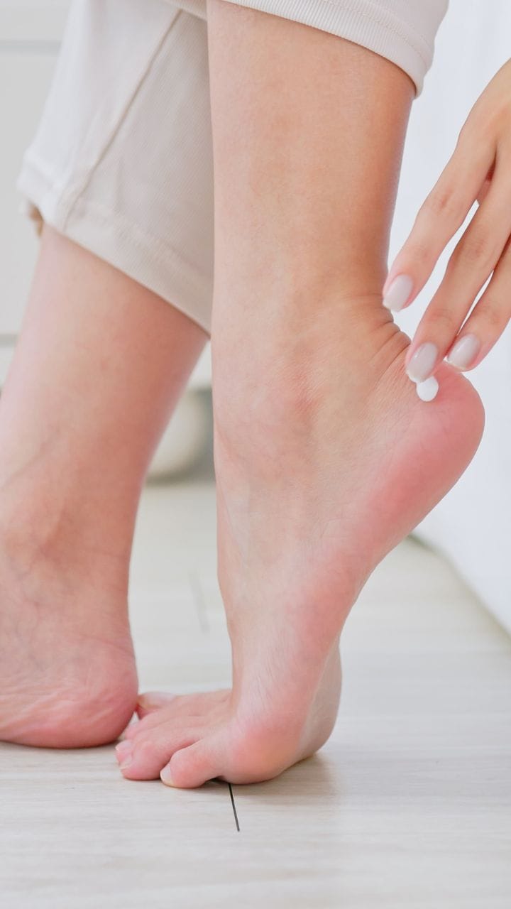 ഉപ്പൂറ്റിയിൽ വിണ്ടുകീറൽ ഉണ്ടെങ്കിൽ ചെറു ചൂടുവെള്ളത്തിൽ ഉപ്പിട്ട് കാലുകൾ മുക്കി വയ്ക്കുക. അതിനുശേഷം കാൽ തുടച്ച് മോയിസ്ച്വറൈസർ പുരട്ടുക.