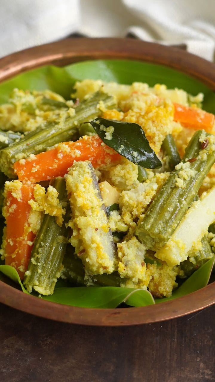 അരിഞ്ഞെടുത്ത പച്ചക്കറിയും ചക്കയും കുരുവും എല്ലാം കൂടി അല്പം വെള്ളവും മഞ്ഞൾപ്പൊടിയും ഉപ്പും ചേർത്ത് പാകത്തിന് വേവിച്ചെടുക്കുക.