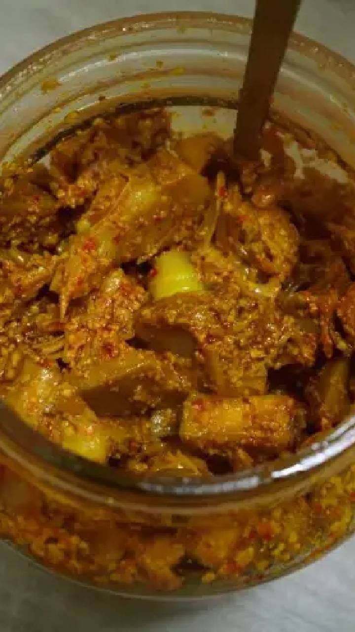 പച്ചച്ചക്ക ചെറുതായി മുറിച്ച് ഉപ്പും മഞ്ഞളും പുരട്ടി ആവിയിൽ പുഴുങ്ങുക. എള്ളെണ്ണ ചൂടാക്കി കടുകും ഉലുവയുമിട്ട് പച്ചമുളക്, ഇഞ്ചി, വെളുത്തുള്ളി എന്നിവയിടുക.