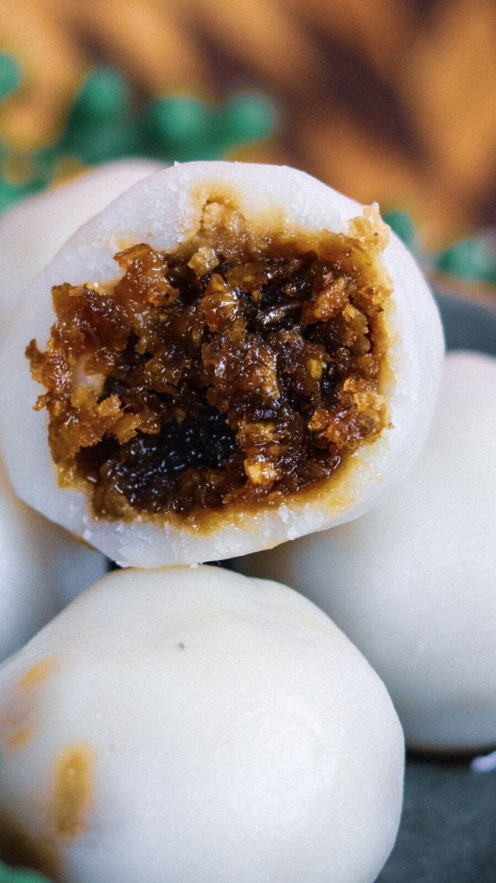 അരിപ്പൊടി അല്ലെങ്കില് ഗോതമ്പുപൊടി ചൂടുവെള്ളം ചേര്ത്ത് നിങ്ങളുടെ ഇഷ്ടത്തിന് അനുസരിച്ചുള്ള വലുപ്പത്തില് ഉരുളകളാക്കി എടുക്കാം. ഉരുളകള് അധികം വലുതാക്കാതെ ശ്രദ്ധിക്കണം.
