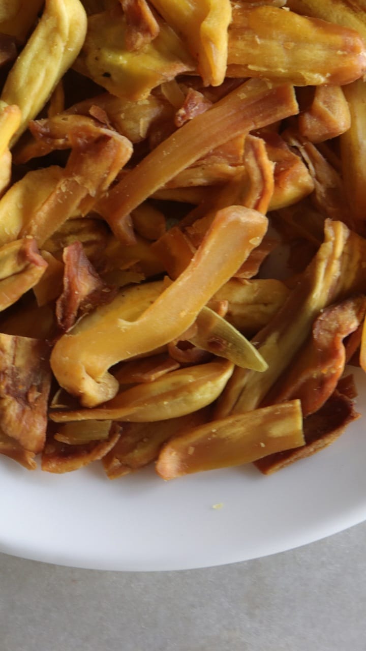 ഒരേ വലിപ്പത്തിലും കട്ടി കുറഞ്ഞും ചക്കച്ചുളകള് അരിയണം. കട്ടി കുറയുന്നതാണ് ചിപ്സ് ക്രിസ്പിയാകാന് നല്ലത്