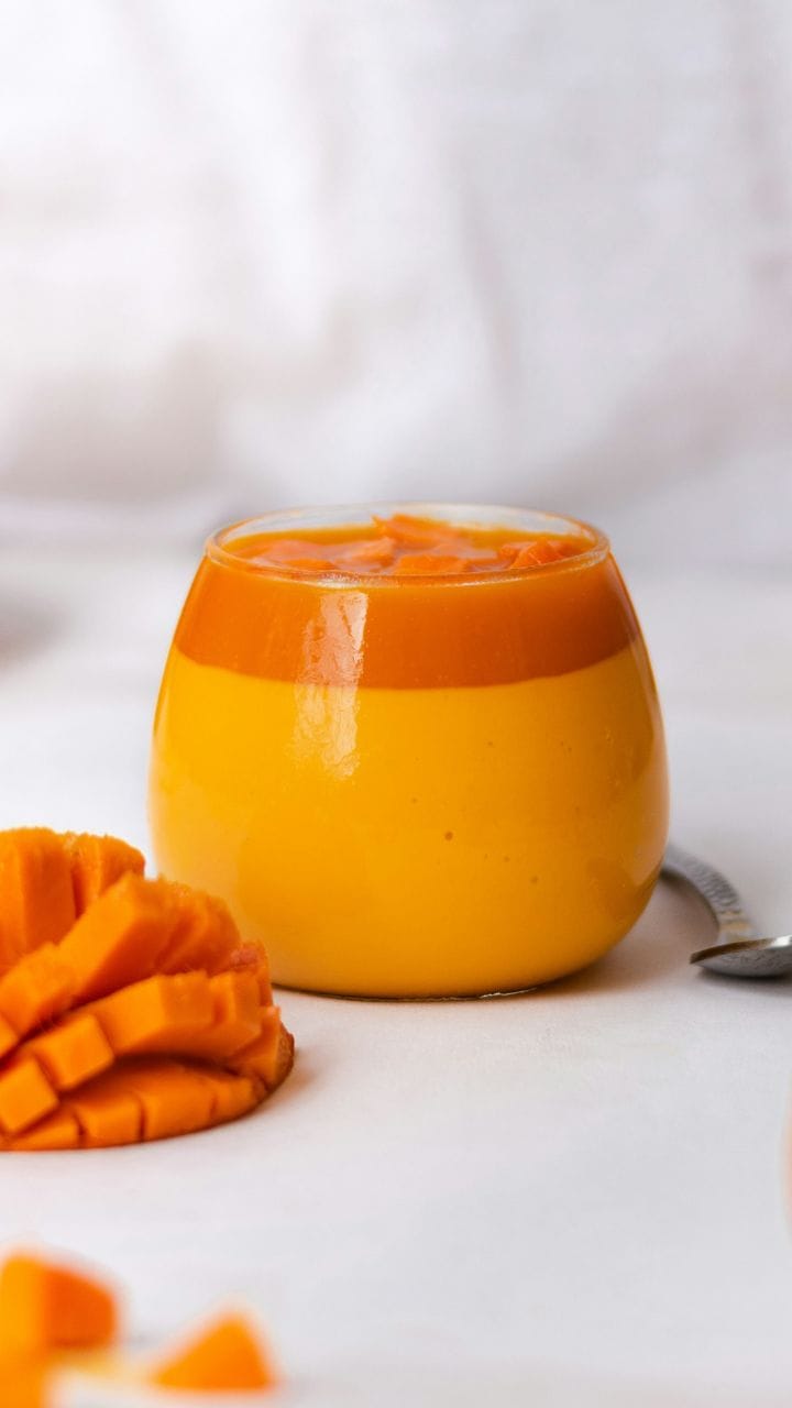 പുഡ്ഡിങ് ഉണ്ടാക്കാനായി രണ്ട് മാങ്ങ, അരക്കപ്പ് പഞ്ചസാര, ഒന്നേകാല് കപ്പ് പാല്, കാല് കപ്പ് കോണ്ഫ്ളോര്, ആവശ്യത്തിന് ഉപ്പ് എന്നിവ വേണം.