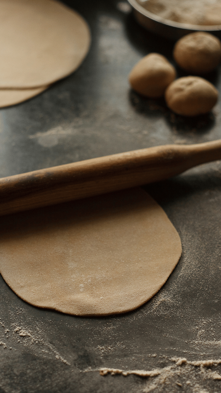 ഗോതമ്പ് പൊടിയിൽ വെള്ളം ഒഴിച്ച് കുഴയ്ക്കുന്നതിനു മുമ്പായി ഒരു അവക്കാഡോ തൊലിയും കുരുവും കളഞ്ഞ് ഉടച്ചെടുക്കണം.