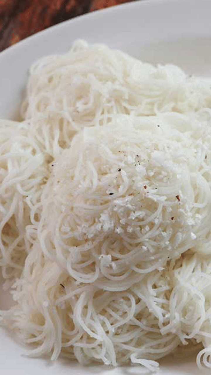 ഇടിയപ്പത്തിനുള്ള അരിമാവ്, കദളിപ്പഴം - 1 എണ്ണം, കൽക്കണ്ടം, തേങ്ങാപ്പാൽ, അരിപ്പൊടി - ഒന്നര ടേബിൾ സ്പൂൺ, പശുവിൻ നെയ്യ് - 1 ടേബിൾ സ്പൂൺ