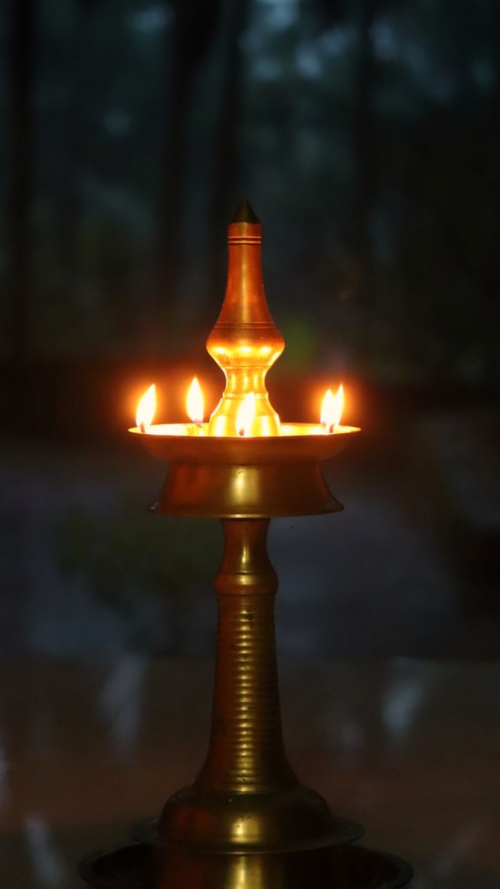 നിലവിളക്ക് സകലദേവത സാന്നിധ്യമായി കണക്കാക്കുന്നു. വിളക്കിന്റെ അടിഭാഗം-ബ്രഹ്മാവ്, തണ്ട്-മഹാവിഷ്ണു, മുകള്ഭാഗം-മഹാദേവന് എന്നിങ്ങനെ സൂചിപ്പിക്കുന്നു.
