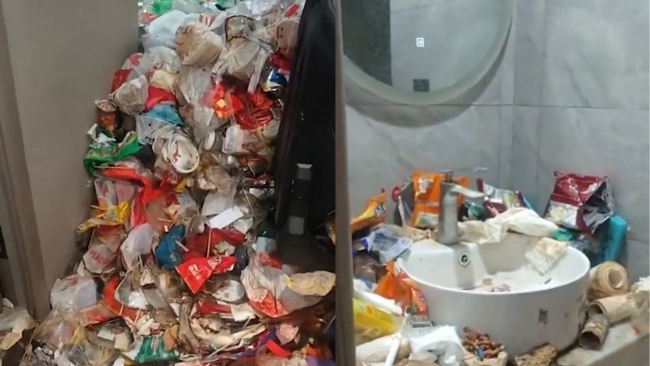 ഹോട്ടൽ ജീവനക്കാർ മുറി തുറന്നപ്പോൾ കണ്ട ദൃശ്യങ്ങൾ ഇപ്പോൾ സോഷ്യൽ മീഡിയയിൽ വൈറലായിരിക്കുകയാണ്. മുറിയുടെ തറ മുഴുവൻ ഭക്ഷണാവശിഷ്ടങ്ങൾ, ഒഴിഞ്ഞ കുപ്പികൾ, പ്ലാസ്റ്റിക് കവറുകൾ എന്നിവ കൊണ്ട് നിറഞ്ഞിരിക്കുന്നു. ഗെയിമിംഗ് ടേബിളും കസേരയും പോലും മാലിന്യക്കൂമ്പാരത്തിന് ഇടയിൽ കാണാൻ കഴിയാത്ത അവസ്ഥയിലായിരുന്നു.